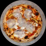 Fior di Latte, Basilico, Salsiccia Fresca, Porcini, Patate Lesse, Olio EVO.